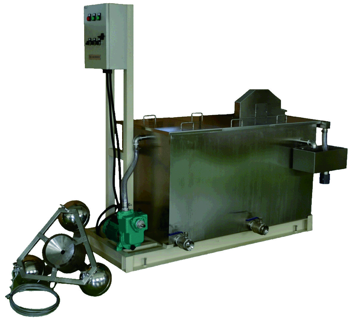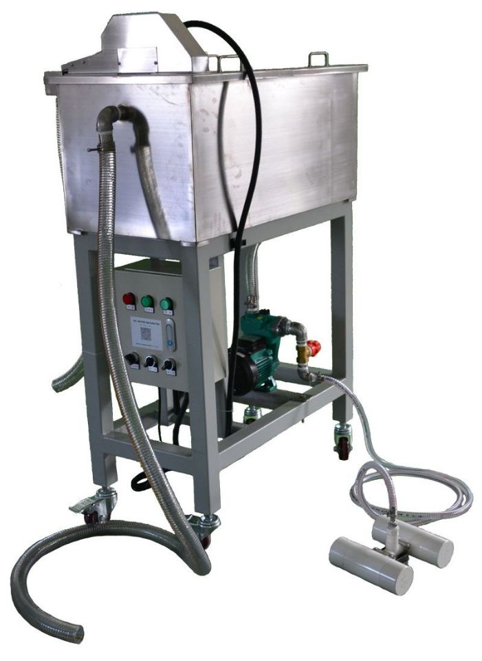 FS series float type oil and water separator is suitable for removing large area of oil slick on wide water surface. It is not restricted by the water level and can easily remove the floating oil slick on the water surface. (e.g. Rolling mill coolant tank, circulating pool, cooling pool, etc.)