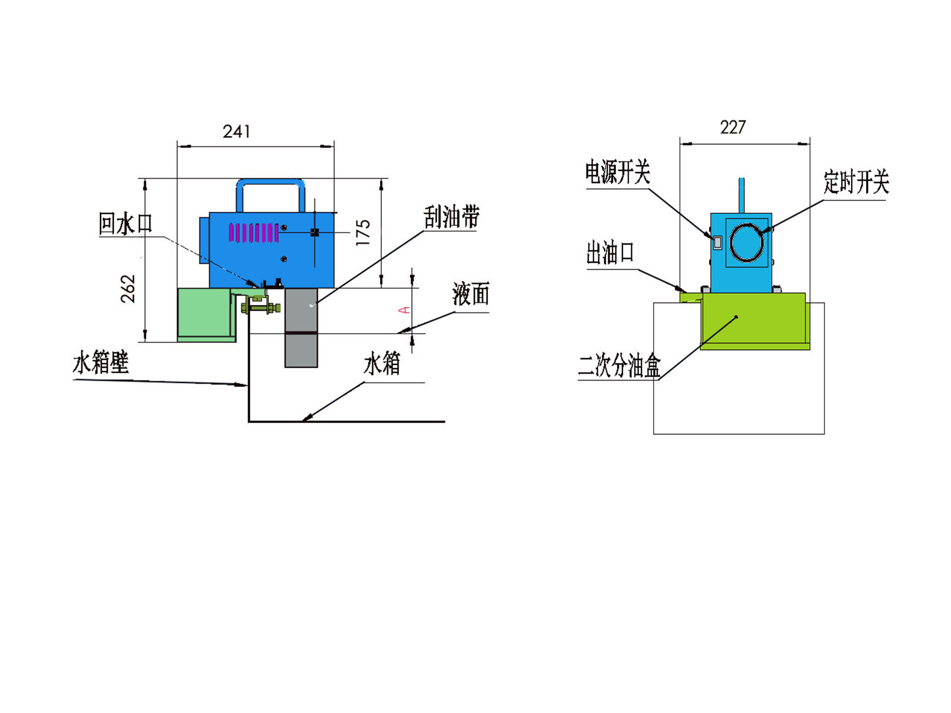 工作原理:利用油水之间不同重力和表面张力等特性,当刮油带穿过水面时,吸附并带走表面各种浮油